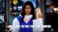 It was bought by Jake Peralta when he couldn't afford to buy a replica of the Infinity Gauntlet from Avengers: Infinity War , and instead buys a knockoff version off russian eBaay